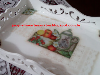 Fiz a decoupagem e coloquei o vidro líquido da acrilex